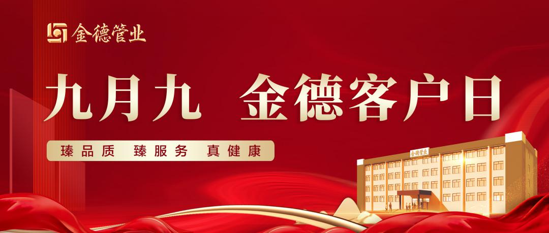 2023-10-02 金德管業集團 4067金德管業集團首屆“九月九客戶日”將于2023年9月9日與廣大客戶相約!本次活動,我們將帶來豐盛的福利回饋,提供高品質客戶福利,搭建開放的互動橋梁,持續擦亮金德管業“瑧品質 臻服務 真健康”品牌形象。
